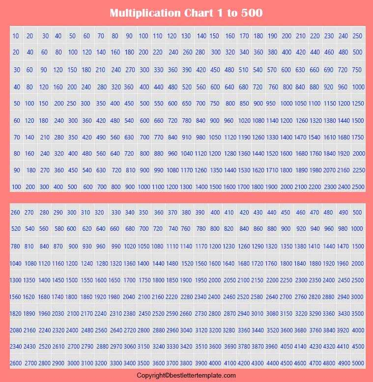 Multiplication Table Chart 1 500 – You can get a blank Multiplication Chart if you are looking for a fun way to teach your child the multiplication facts. This will likely allow your kid to complete the important points on their own. You will discover blank multiplication maps for different product can vary, such as 1-9, 10-12, and 15 products. If you want to make your chart more exciting, you can add a Game to it. Here are a few ways to buy your kid started out: Multiplication Table Chart 1 500.